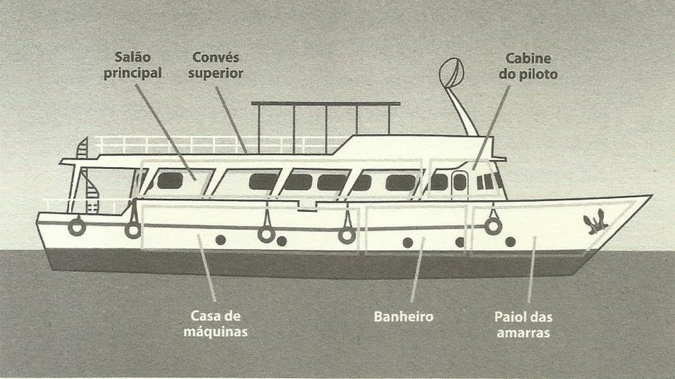 Tudo isso na parte de cima da embarcação.